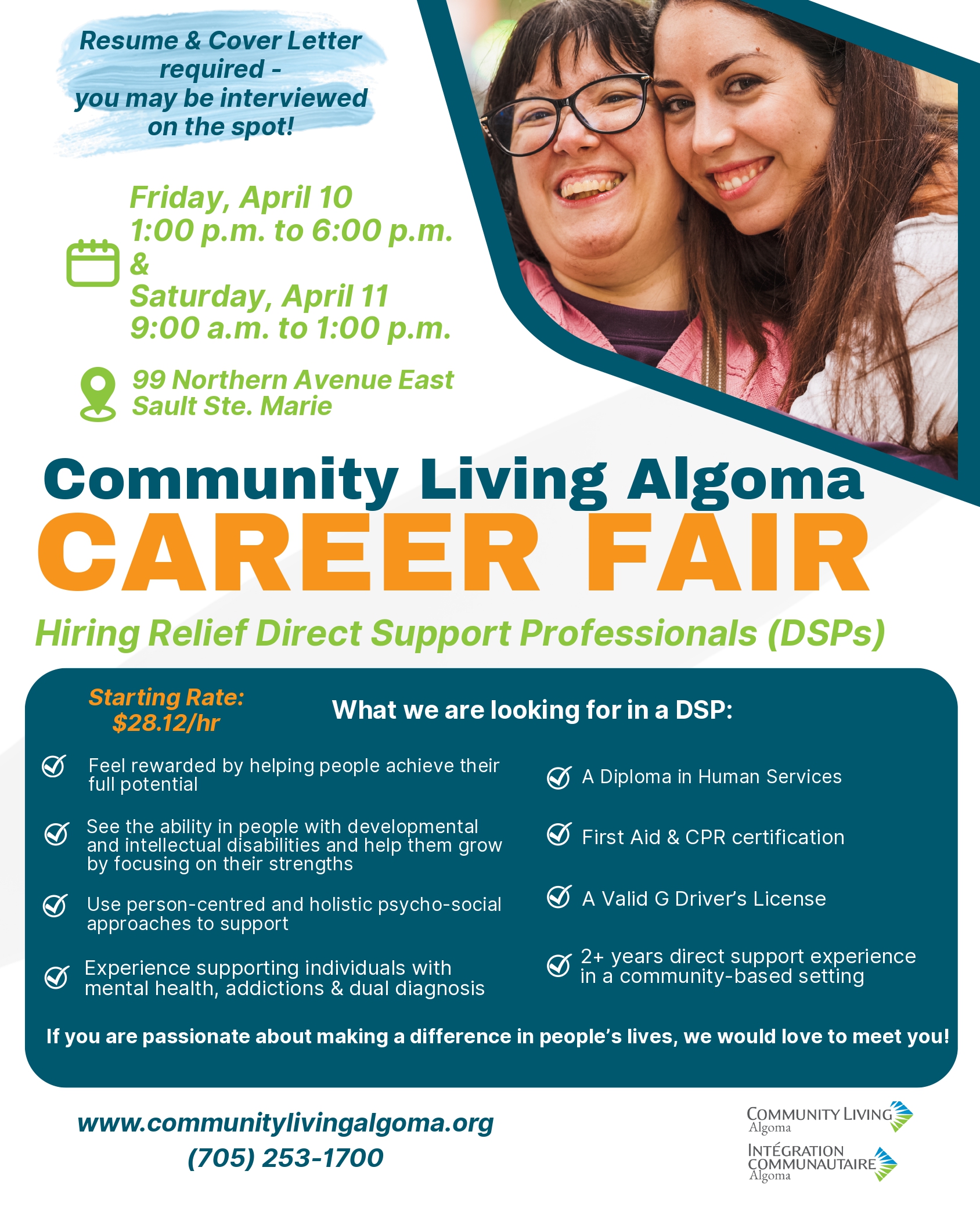 Home Careers Community Living Algoma Career Fair – April 10 and 11, 2026