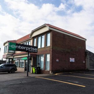 Located in prime spot on Great Northern Road with very visible signage available. Current spot of Enterprise Car Rental. Includes plenty of convenient parking. This main floor space has large open reception or show room area, private offices, and a single bay area. Notmany spaces available for lease have this type of exposure and traffic visi ...
